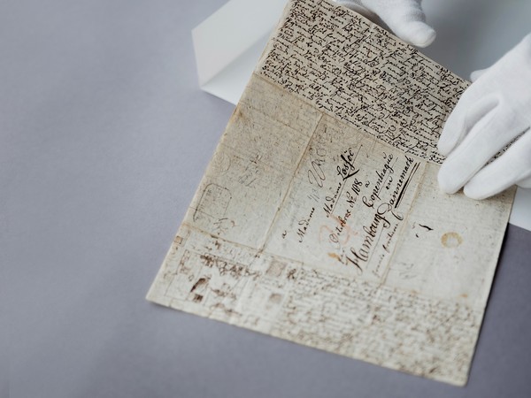 H.C. Andersen skrev brevet her til Madame Læssøe, da han var i Napoli. De to havde et nært venskab, hvor Andersen ofte kom på besøg. Blomsten, der er vedlagt brevet, plukkede han på den romerske digter Vergil’s grav i Napoli. Illustrationen i toppen af brevet er ikke tegnet af Andersen, men har fungeret som en slags postkort eller brevpapir.